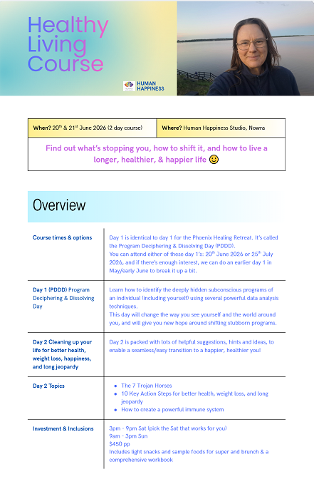 In this course, we look at the whole picture, and give you practical, easy and manageable techniques to live a cleaner, healthier, and happier life.